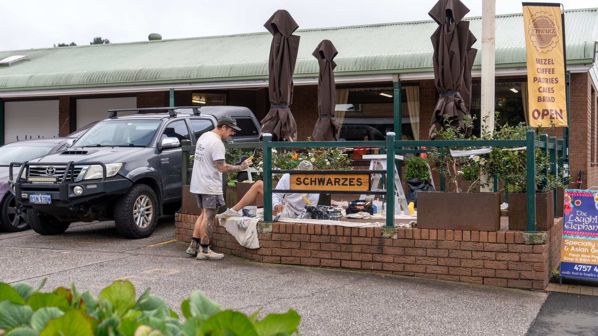 Swartz Bakery, a beloved local institution in Wentworth Falls, needed a full refresh of its exterior paintwork, including its high-traffic outdoor seating area. With a strong morning rush and steady foot traffic throughout the day, coordinating the work without disrupting business operations was crucial. The building’s exterior showed signs of wear, particularly in high-touch areas, which required thorough surface preparation and premium coatings to ensure long-lasting results. The bakery owner was also keen to preserve the business’s warm and welcoming appearance during and after the works.