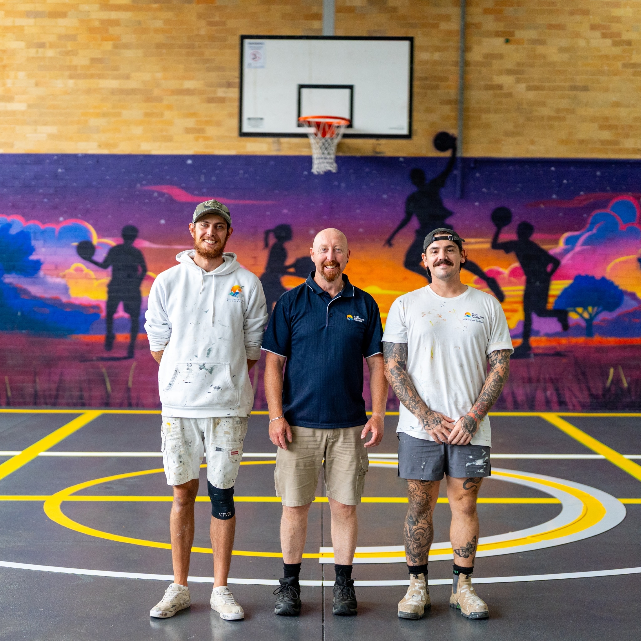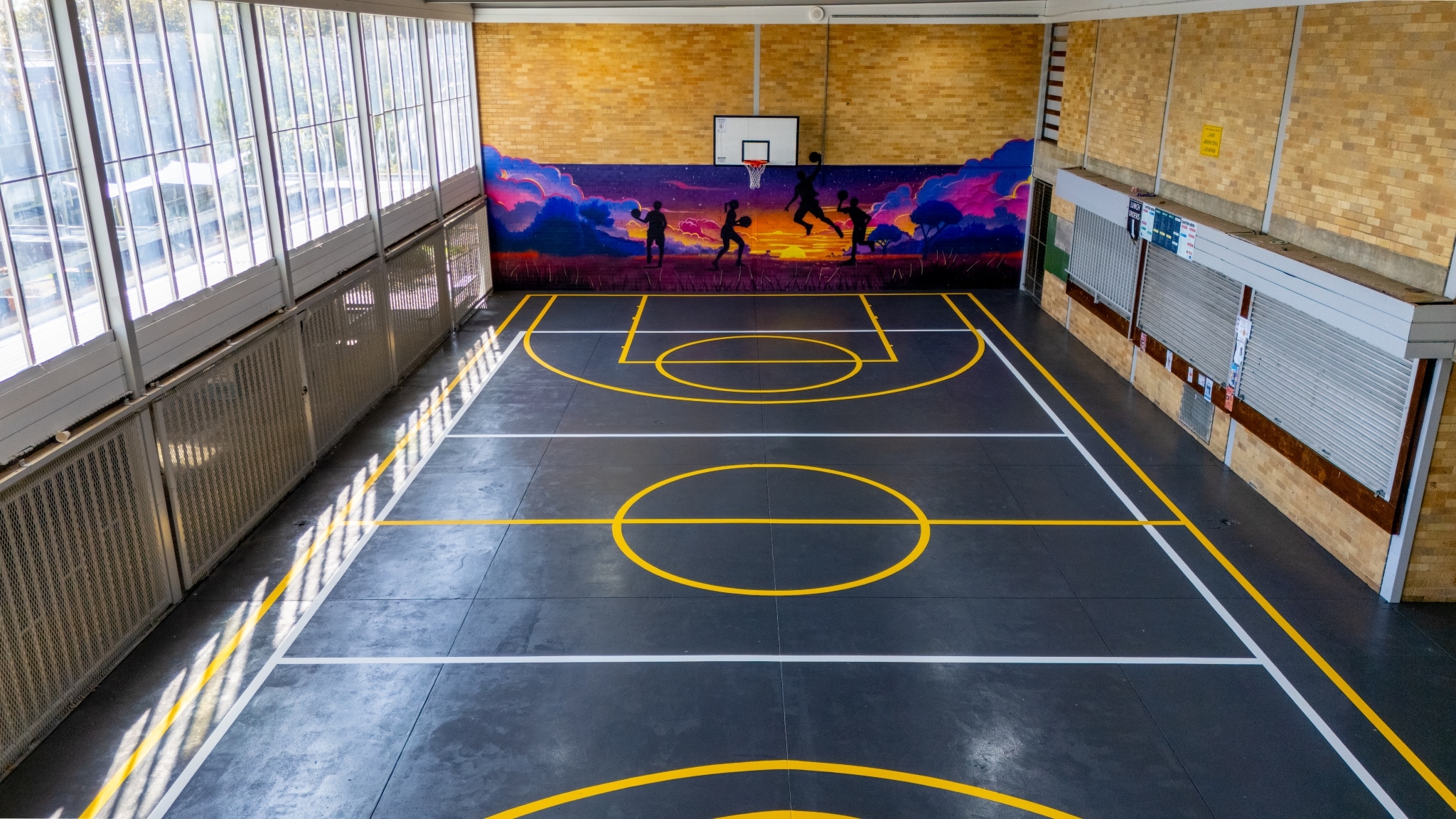 - Regulation markings for basketball, tennis, and netball courts